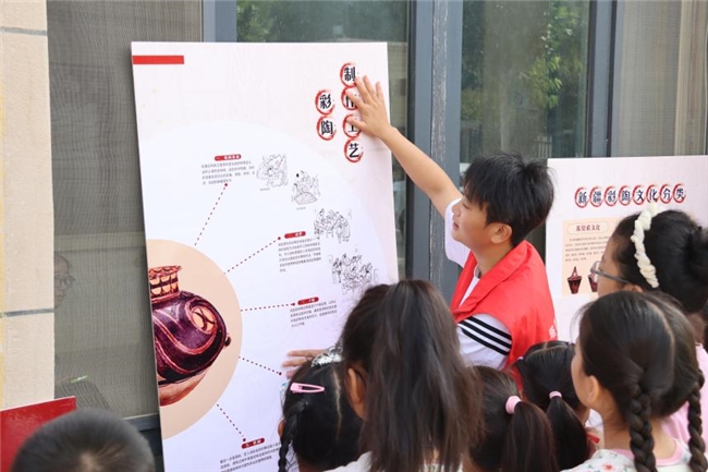 图为讲解员结合展板讲解新疆彩陶历史与文化 杨克民供图