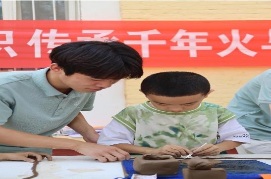 “先把陶泥反复摔打,排出空气才不容易裂;擀泥时要均匀用力,这样做出来的底座才平整……”在陶艺体验环节,实践队员化身“小老师”,向参与群众尤其是青少年详细演示摔泥、擀泥、搓泥条、塑形等基础技法。小朋友们目不转睛地紧盯操作步骤,随后拿起陶泥动手尝试,有的模仿经典彩陶纹饰绘制图案,有的发挥想象创作专属造型。实践队员全程巡回指导,耐心解答“怎么让泥条粘得更牢”“纹饰怎么画更对称”等问题,现场充满欢声笑语。
